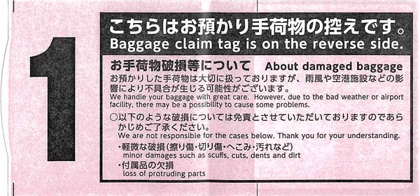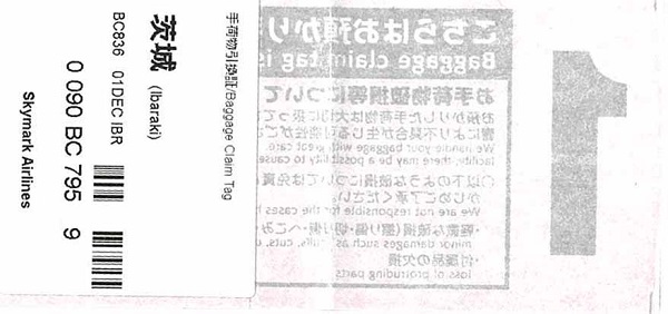 スカイマーク 836便 手荷物引換証