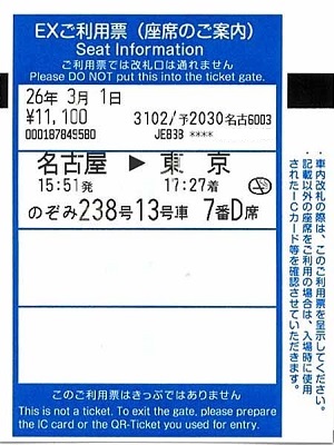 新幹線 指定 名古屋→東京;スマートEX