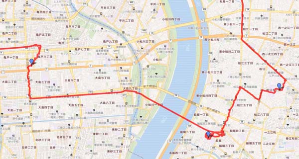 GPSログ 亀戸 船堀 松江周辺 広域図